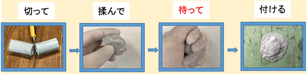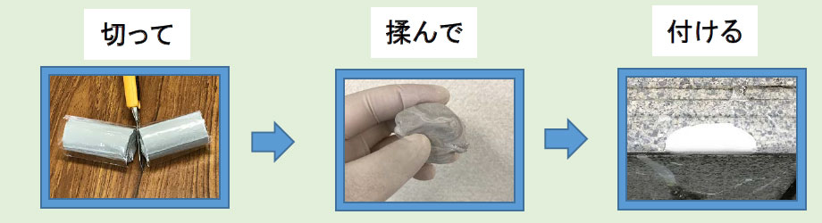 そこで、手早く円盤状に成型し、漏れ箇所へ貼り付けます。